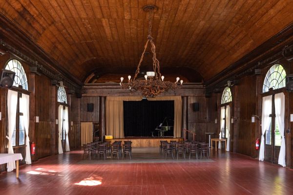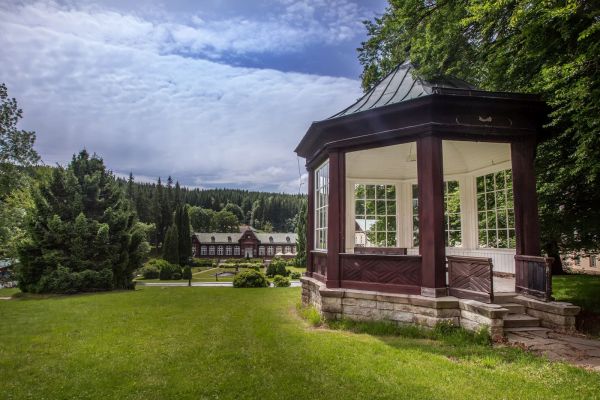 Hudební pavilon – unikátní dřevěná stavba byla postavena dle projektu architekta Antonína Onderky v letech 1836 – 37 jako tzv. Lázeňský salón. Budova, která od prvopočátku sloužila jako hudební a divadelní sál, je dochována v téměř původním stavu. Vstupní, zaoblená, část je doplněna Bílými toskánskými sloupy. Dochován je i jeden ze tří dřevěných lustrů, které navrhl Erich Hurden z vídeňské Akademie umění